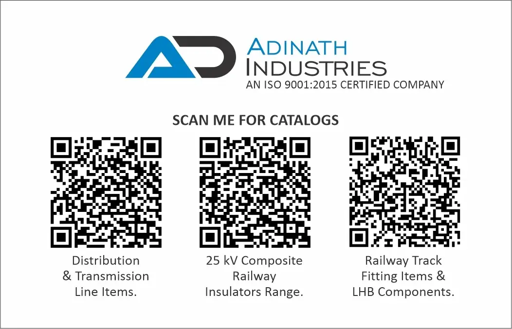 M/s Adinath Industries is an ISO 9001 : 2015 Certified Vendor of Indian Railways registered with Research Design & Standard Organization (RDSO) Lucknow, India for Manufacturing of High-Quality Rubber, Plastic, Casting & Forging Components for Railway Track Fastening System. Also Approved for Coaches & Wagon Components, 25 kV OHE Composite Polymer Insulators for Railway and Metro Rail Traction System. Our Product Range includes 11 kV to 400 kV Composite Polymer Insulators for Transmission & Distribution Lines.